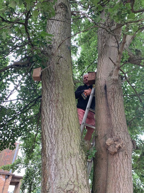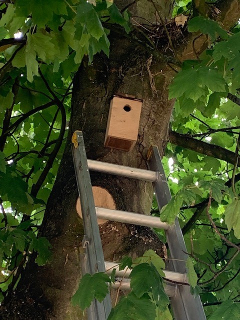 Caring for our gardens and encouraging wildlife: positioning bird boxes, planting bushes and creating our Wildflower meadow.