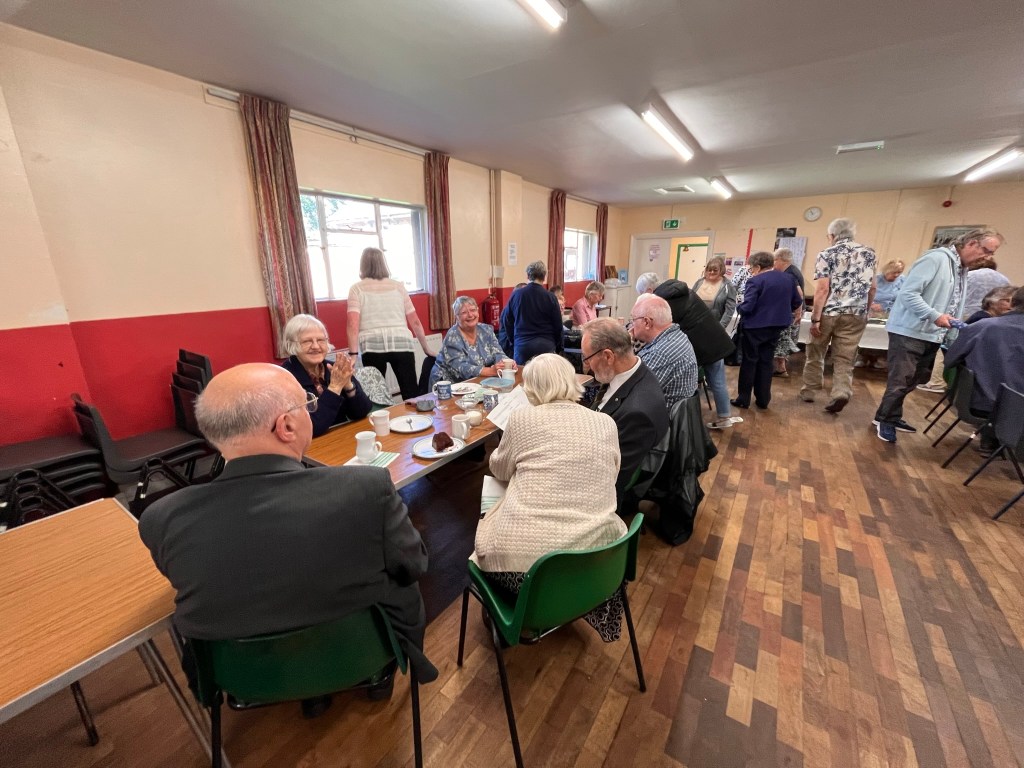 A wonderful celebration for harvest this morning followed by a delicious lunch: Home made soup, pie, peas and mash potato and apple pie/crumble and wine.